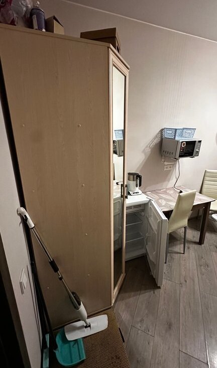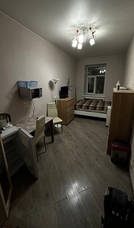 Комната 14 кв. м.; Солнечная сторона, первая от входа в квартиру. Стеклопакеты. Есть вся необходимая мебель и техника, так же в коридоре есть дополнительный шкаф для хранения вещей.