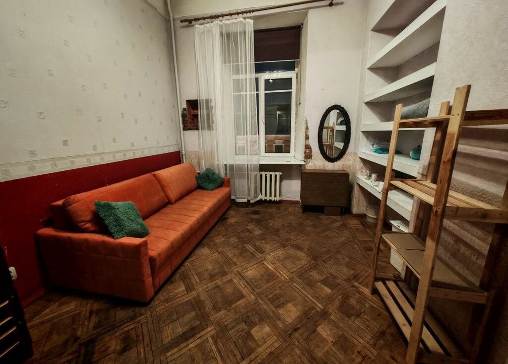 Комиссия 50%. Сдается у метро Чернышевская отличная комната 15 м2. Комната видовая, расположена на 4 этаже, вид красивый на город, стеклопакеты. Высокие потолки h = 3.50. В комнате удобное спальное место - диван кровать, вместительный шкаф. Есть стиральная машинка и холодильник.