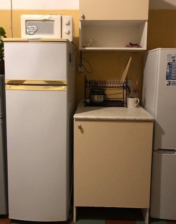 На кухне свой холодильник и стиральная машина, общая газовая плита, общий wi-fi + есть провод под свой роутер.