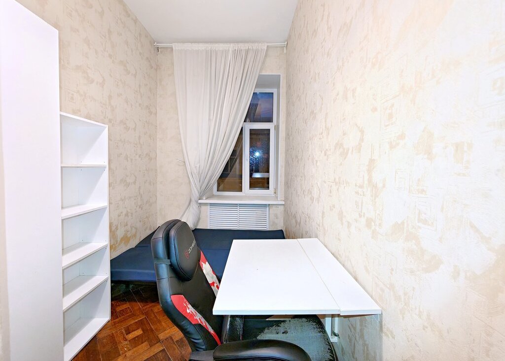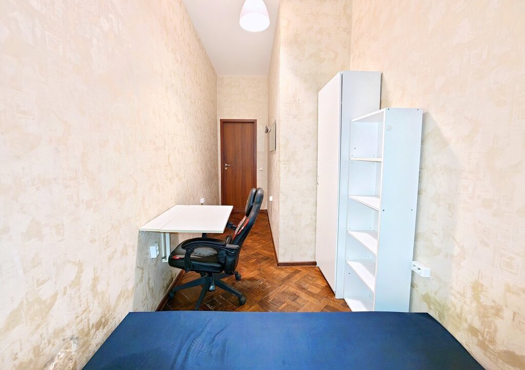 -Небольшая изолированная Комната, раскладной диван, шкаф, раскладной стол+кресло, интернет Wi-Fi и проводной. Установлены стеклопакеты. Окна во двор.