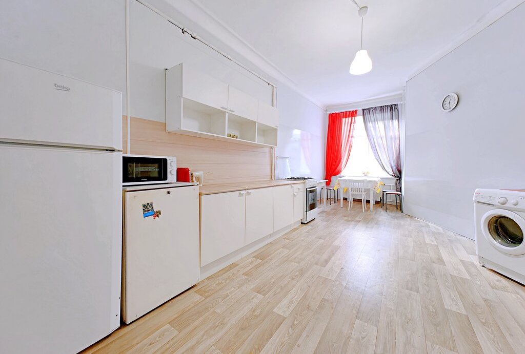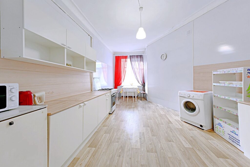 -В отличие от коммуналок, вся квартира, включая места общего пользования (кухня, ванна, туалет, коридоры) в хорошем состоянии, т.к. принадлежит одному человеку (он в квартире не проживает).