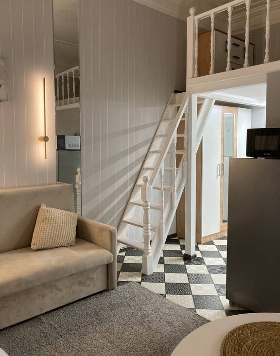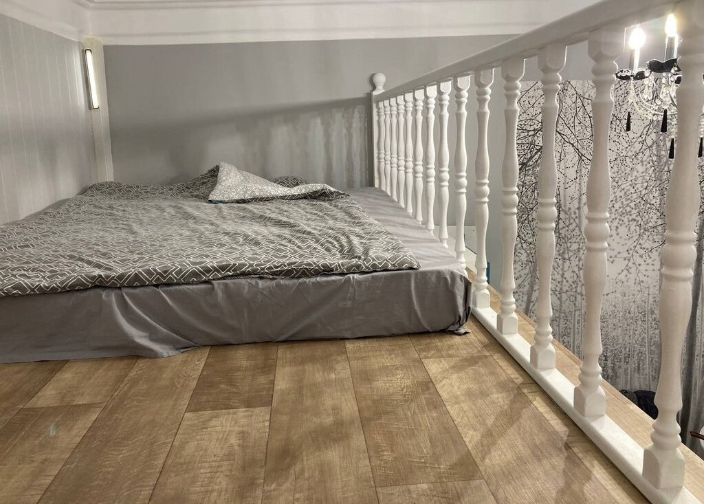 Сдаётся светлая комната с двумя окнами на длительный срок, есть второй этаж со спальным местом. Кухня оборудована индукционной плитой, микроволновкой и холодильником. В санузле - душевая кабина и стиральная машина.