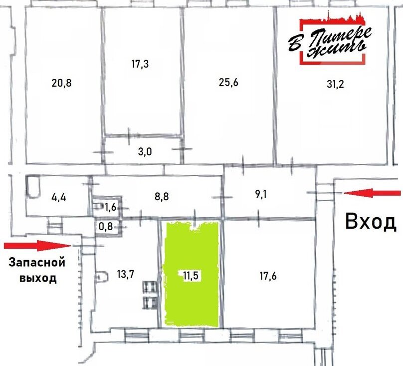 Сдается на длительный срок комната в Петроградском р-не Санкт-Петербурга 11,5 кв.м.