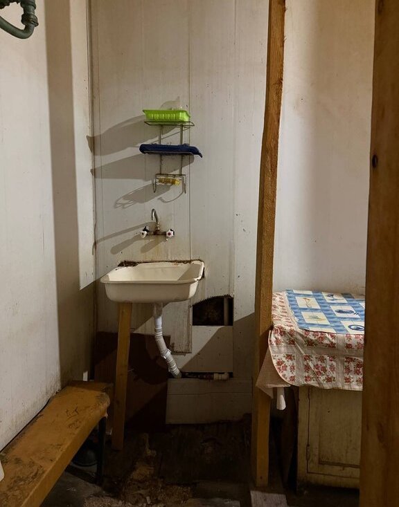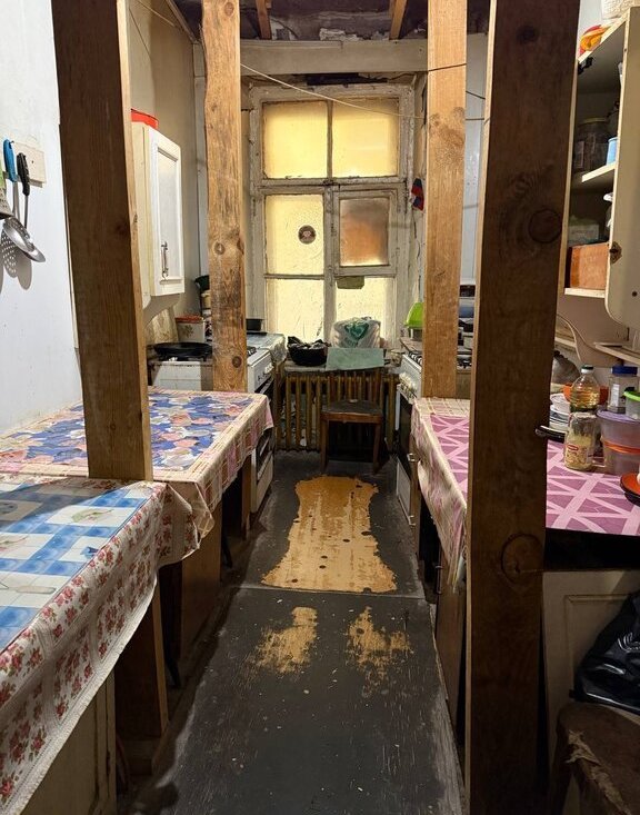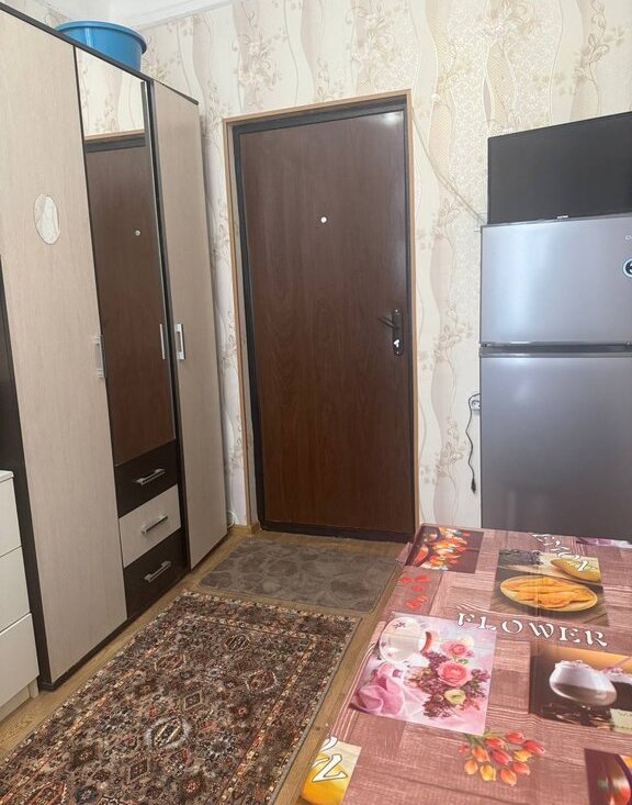 Вместительный шкаф, комод, стол ,стулья, телевизор, чайник, новый холодильник, посуда.