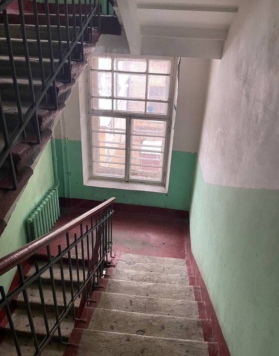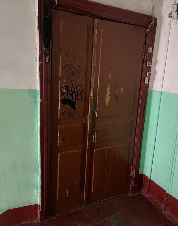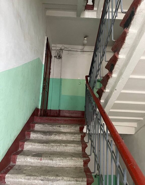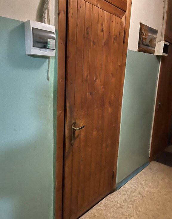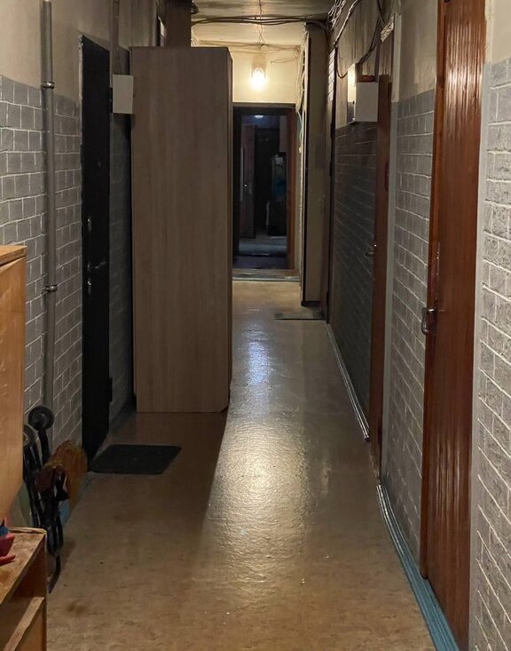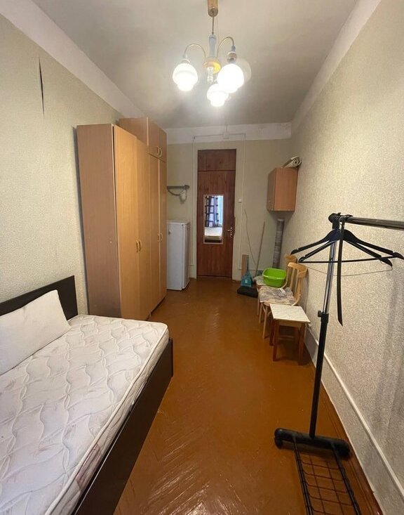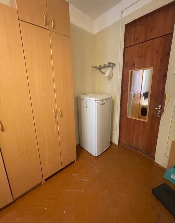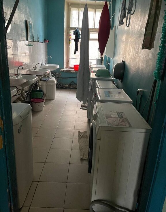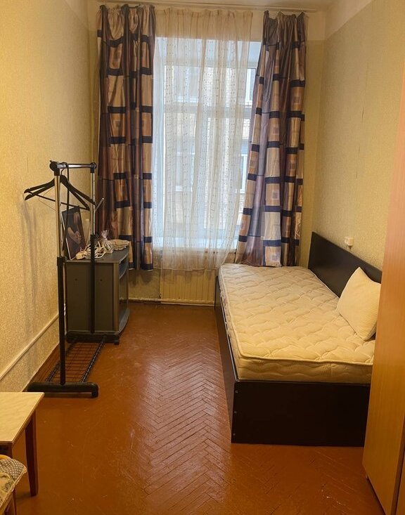 Комната находится в самом конце коммунальной квартиры, напротив кухни, рядом с прачечной, поэтому ходить далеко никуда не нужно.