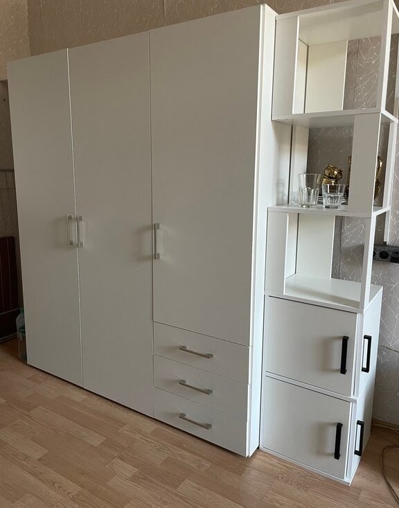 - Мебель: диван (раскладывается), шкаф, стеллаж, стол