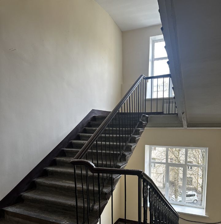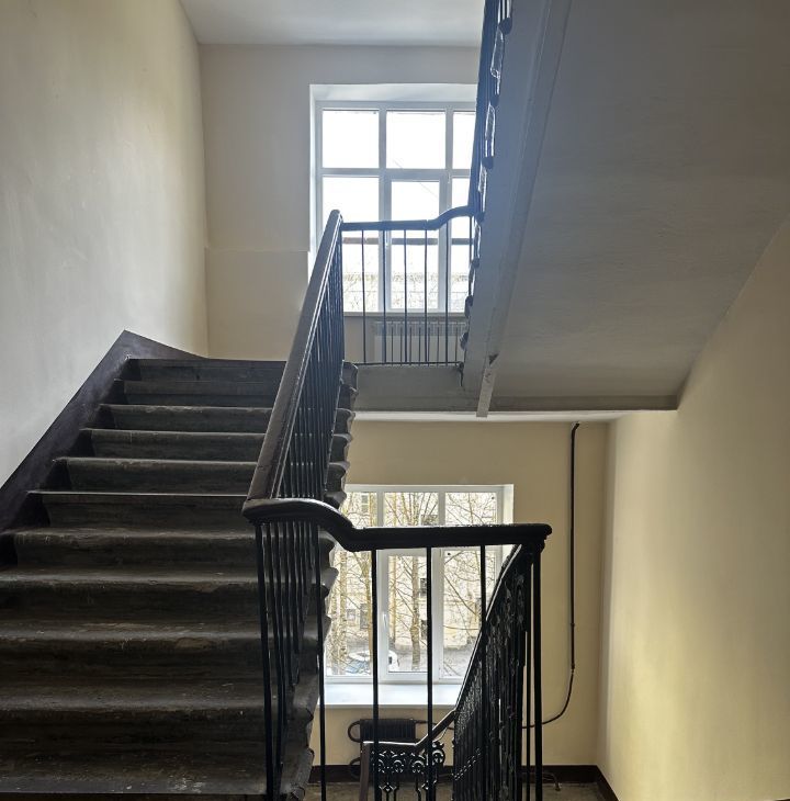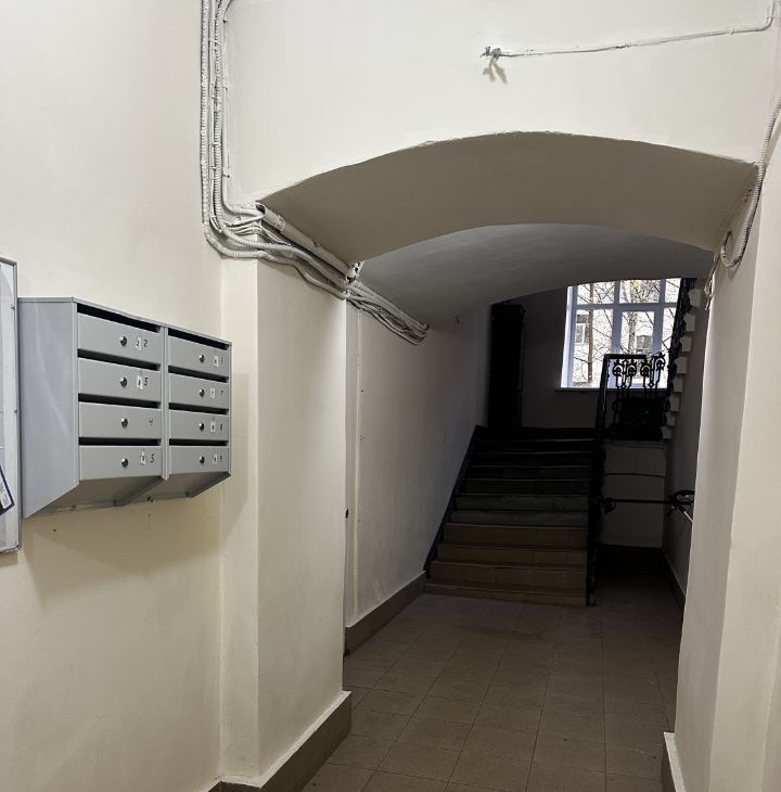 Парадная отремонтирована, заменены окна и батареи, на полу частично уложен кафель.