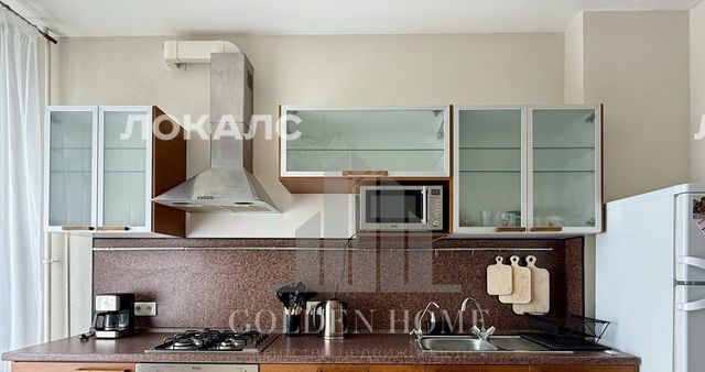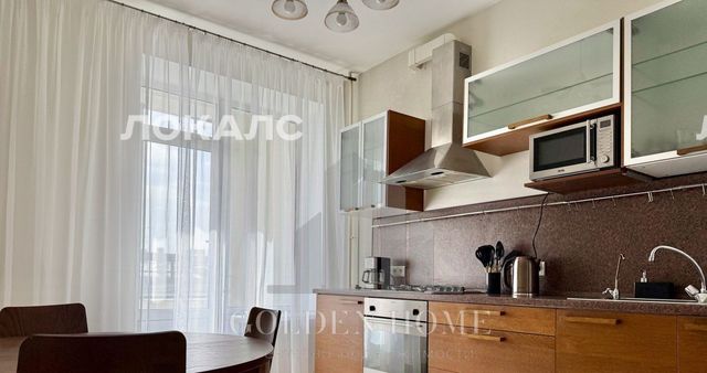 Квартира двусторонняя. Окна выходят в тихие дворы. Комнаты наполнены светом и воздухом. В кухне-столовой установлен гарнитур с современной бытовой техникой, посудомоечной машиной и газовой плитой, которую ценят хозяйки, любящие готовить. Кондиционеры в комнатах.