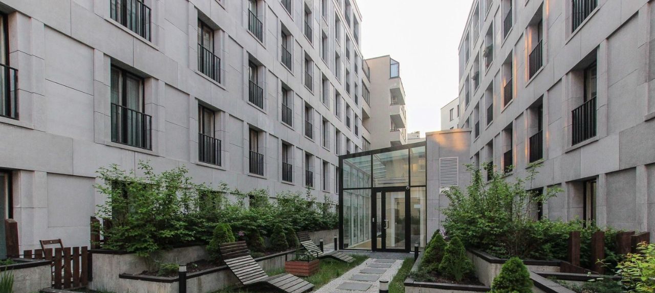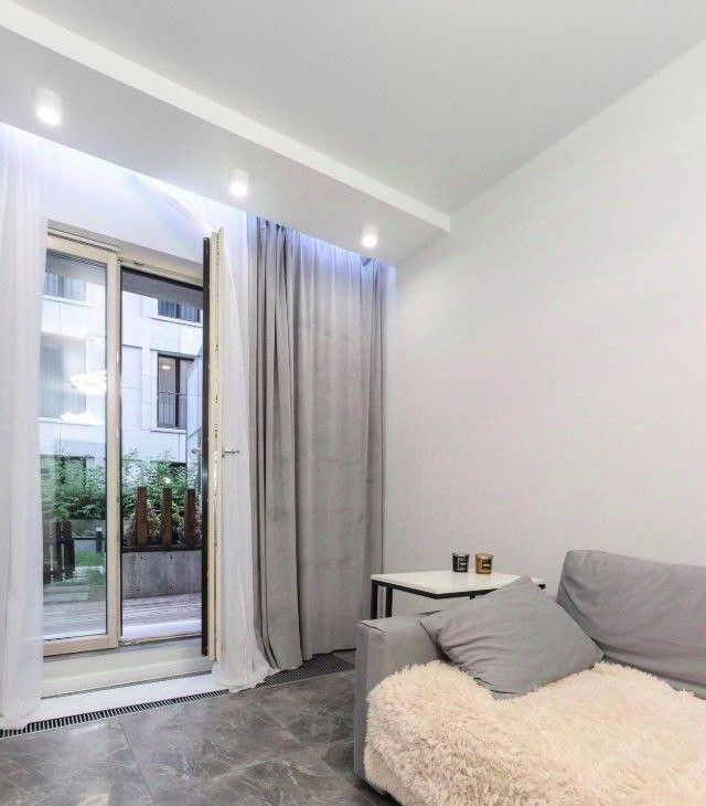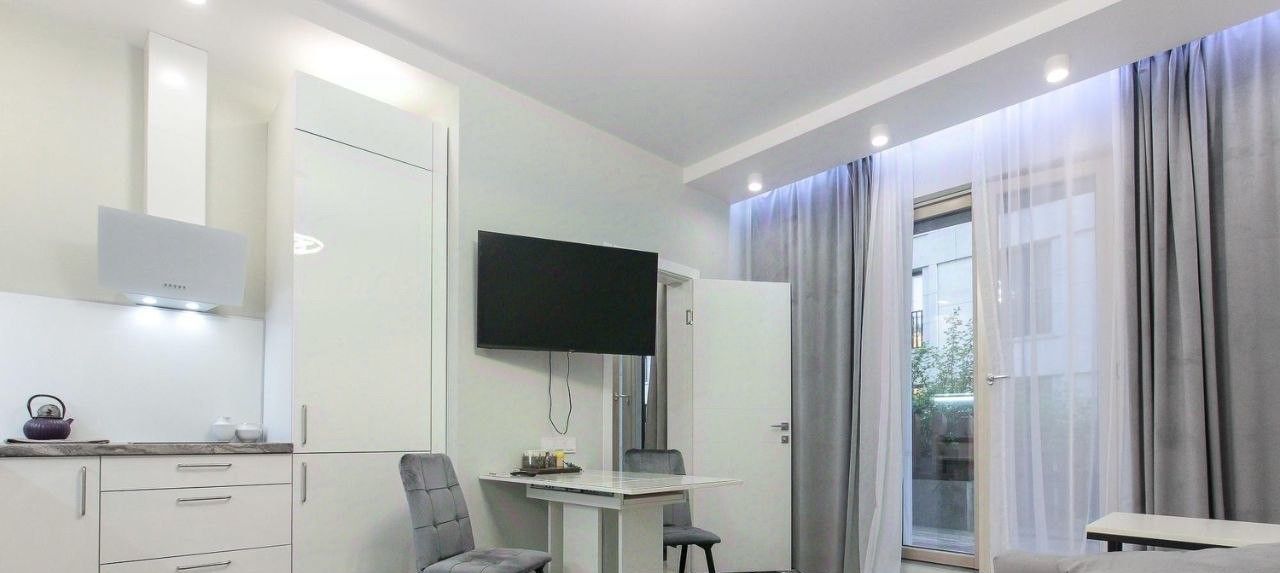 Cовременная евродвушка с выходом на собственную открытую зеленую террасу со столиками и шезлонгами, в самом центре Санкт-Петербурга. Эксклюзивное предложение, единственная и уникальна квартира! В новом клубном доме с красивой архитектурой!