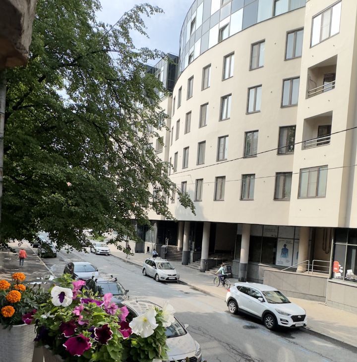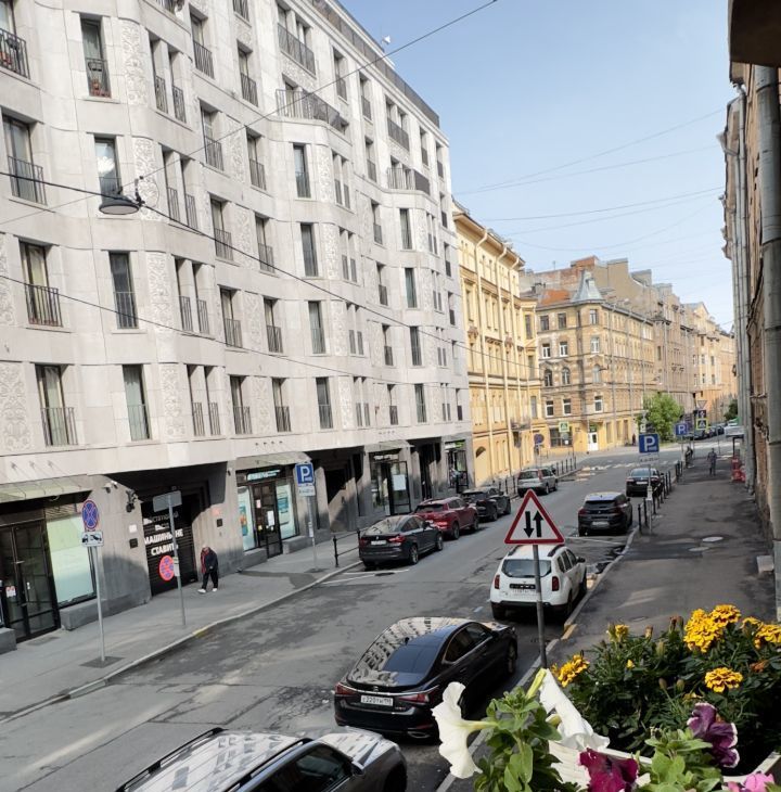 Окна выходят на тихую одностороннюю улицу.