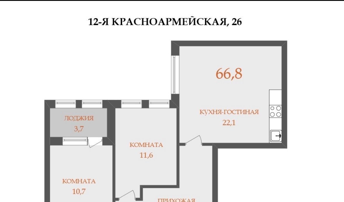 2-к кв. Санкт-Петербург 12-я Красноармейская ул., 26 (66.8 м²)