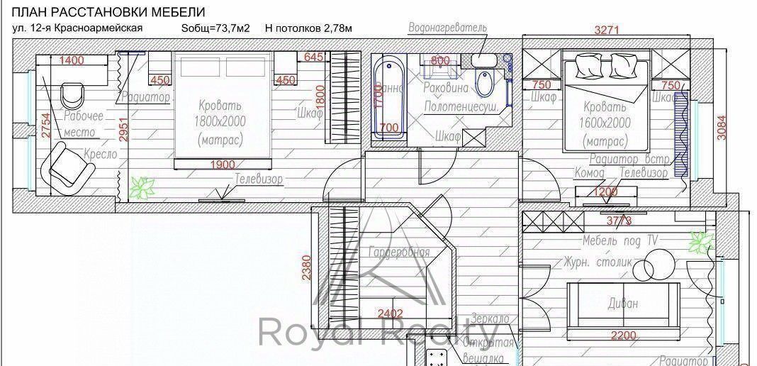 2-к кв. Санкт-Петербург 12-я Красноармейская ул., 26 (75.0 м²)