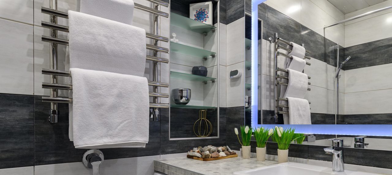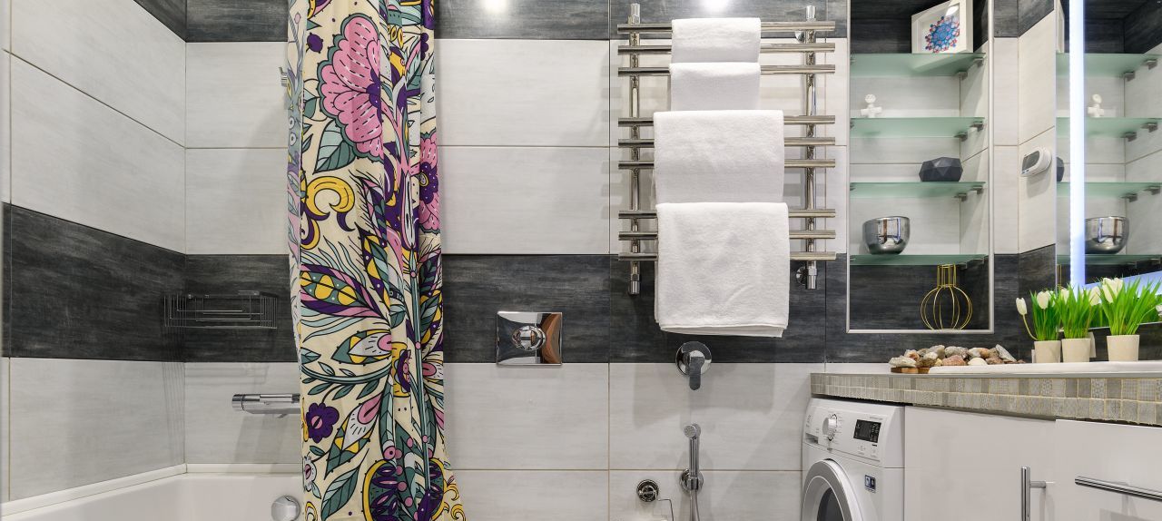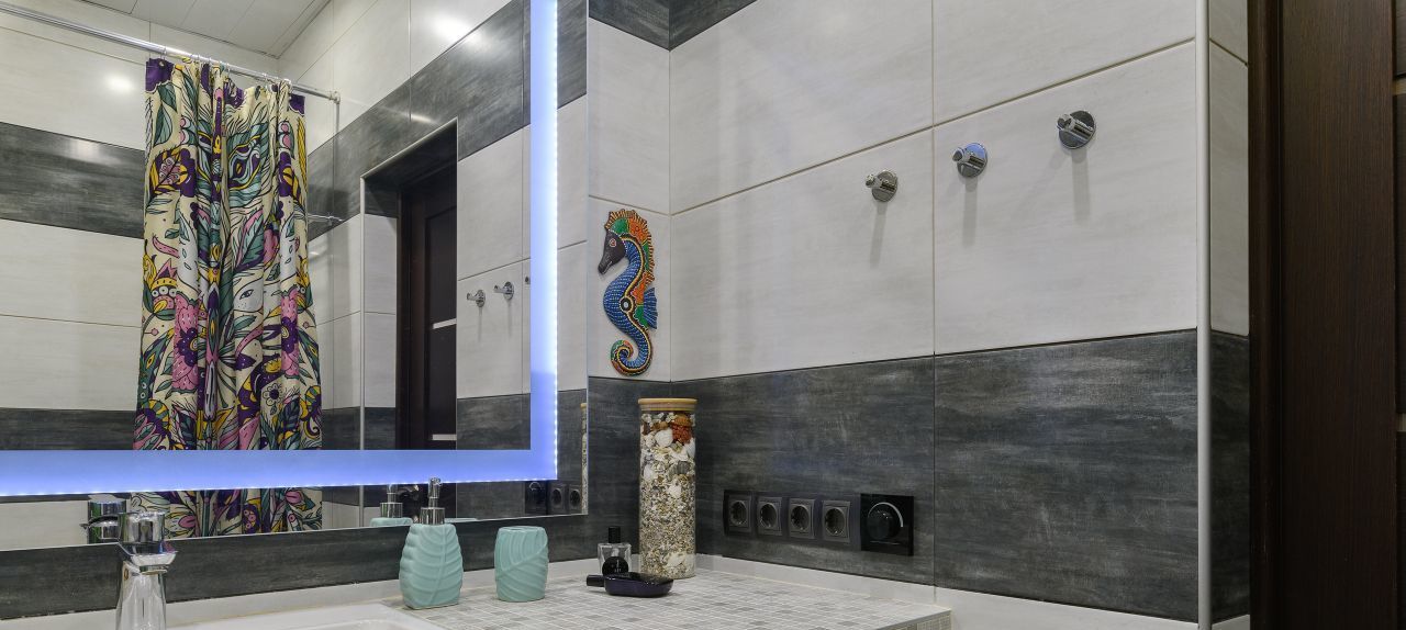 - Современный санузел с ванной.