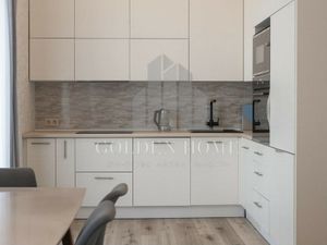 Квартира расположилась на 8-м этаже, общей площадью 76 м2, две изолированные спальни, одна из которых с лоджией, кухня оборудованная всей необходимой техникой, два полноценных сан.узла, гардеробная комната. Двусторонняя планировка.