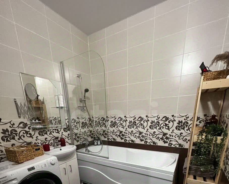 В ванной комнате расположена стиральная машина.