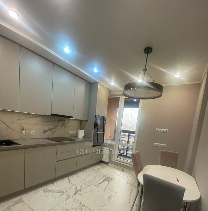 На кухне встроенные: духовой шкаф, микроволновая печь, варочная панель, посудомойка, холодильник.