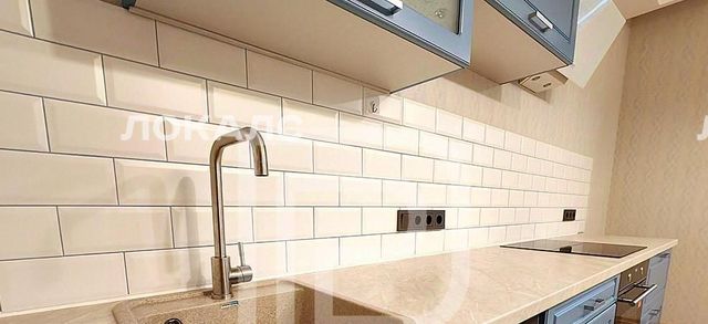кухня- гостиная 22 м² с кухонным гарнитуром и бытовой техникой