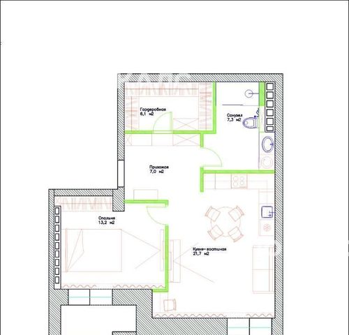 - Высокие потолки и большие окна, что делает квартиру светлой и просторной,