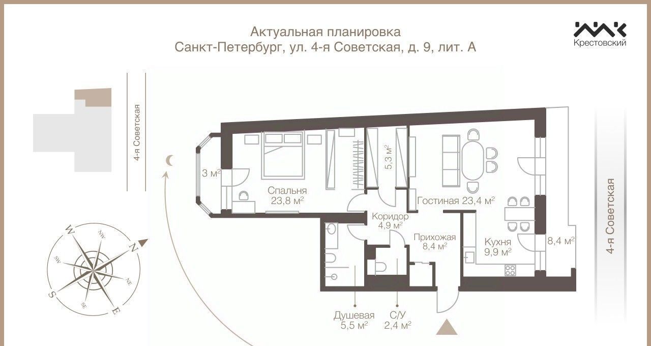 2-к кв. Санкт-Петербург 4-я Советская ул., 9 (84.0 м²)