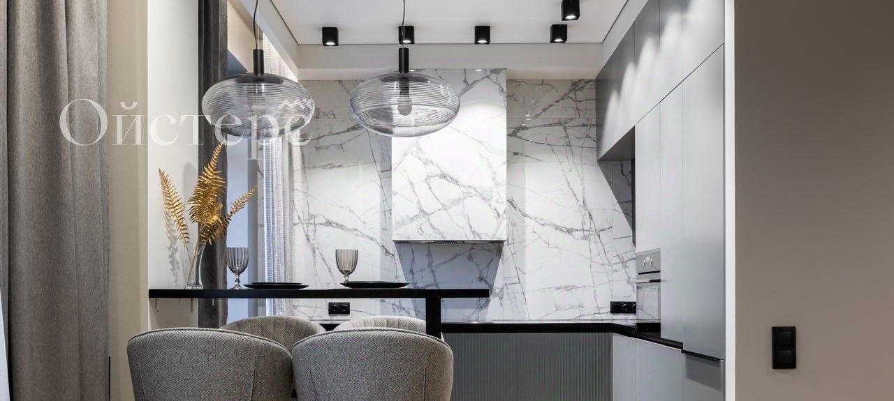 Просторная кухня-гостиная площадью 58 кв.м. с комфортным местом для отдыха и выходом на террасу. Зона кухни полностью укомплектована всей необходимой бытовой техникой. Большая гардеробная с организованной системой хранения. Два санузла.