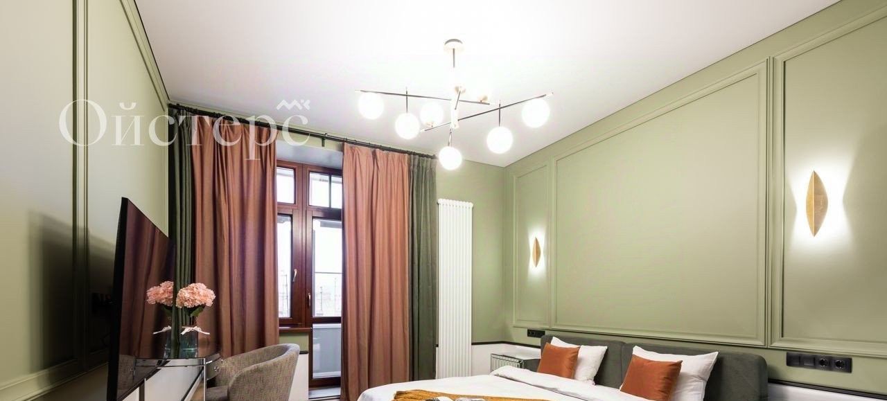 Спальня с красивой гардеробной и выходом на лоджию. Система кондиционирования. Хорошая шумоизоляция. Приятный вид на исторический центр и крыши домов. В шаговой доступности магазины, кафе и рестораны.