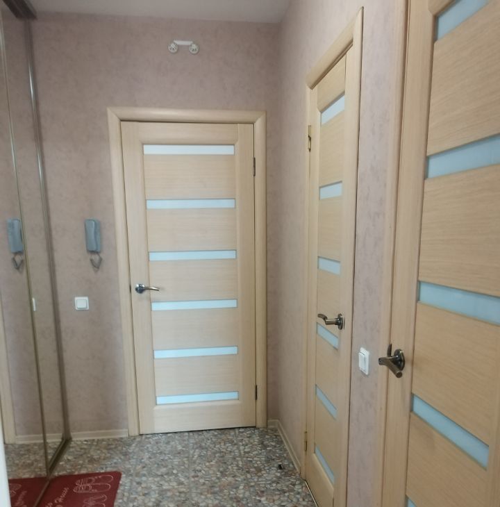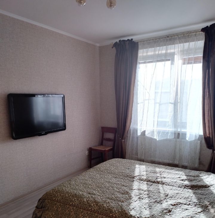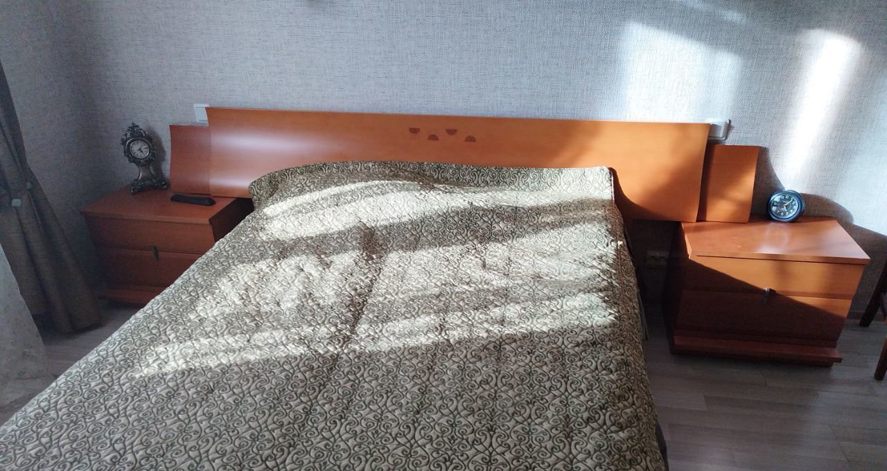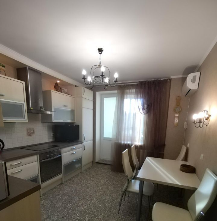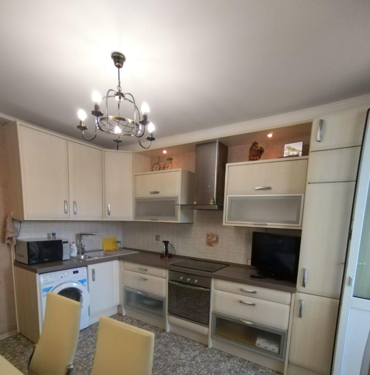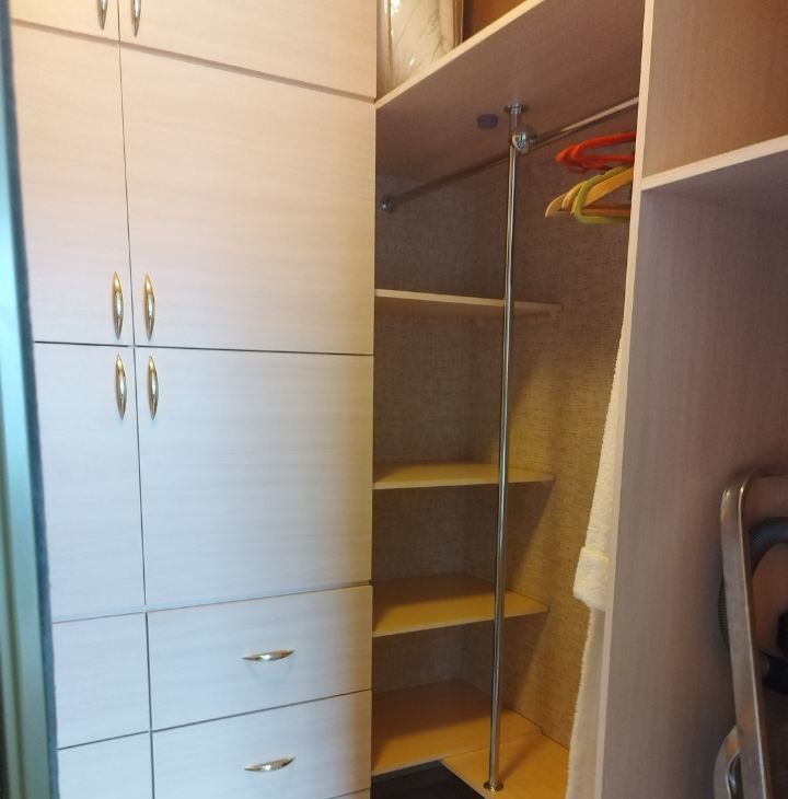 Квартира мебелью не перегружена.В комнате только большая двухспальная кровать ,и телевизор .Мечта всех женщин просторная ,оборудованная гардеробная 4,5 кв м.Вход из комнаты.Также два шкафа в прихожей.Уютная кухня с кондиционером.Новая стиральная машина.Есть вся необходимая посуда .За ненадобностью могут вывезти.Вход на застеклённую лоджию из кухни. Вид во двор.