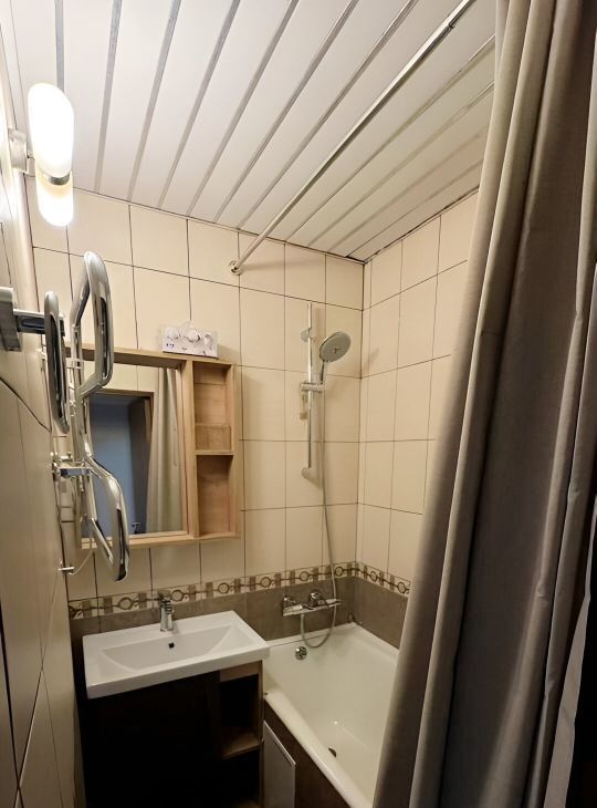 В квартире сделан евроремонт, который создает атмосферу комфорта и уюта. Из техники есть все необходимое: кондиционер, холодильник, телевизор и стиральная машина. Просторная планировка позволяет удобно расположить мебель и организовать пространство по вашему желанию. Санузел выполнен в современном стиле.