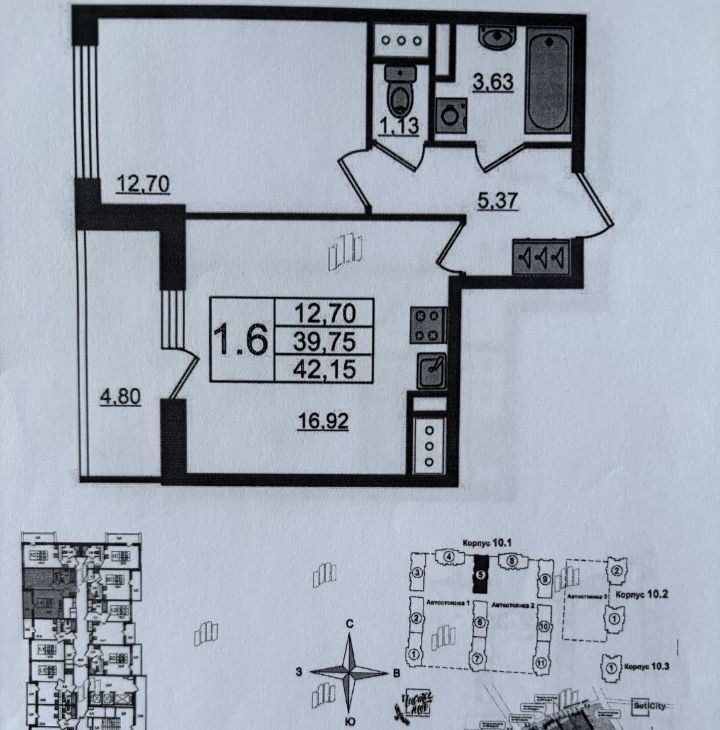 Также к данной квартире имеется паркинг на -1 этаже, при совместной покупке паркинг будет стоить 1млн₽.