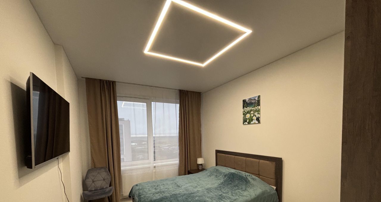 Квартира оформлена в светлых тонах с хорошим, современным ремонтом. Очень солнечная: в хорошую и ясную погоду солнце в квартире весь день. С лоджии прекрасный вид на залив, поля, в ясную погоду можно увидеть Сестрорецк.