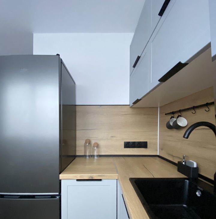 Вся необходимая новая техника (холодильник, духовой шкаф, варочная панель, стиральная машина, посудомоечная машина).