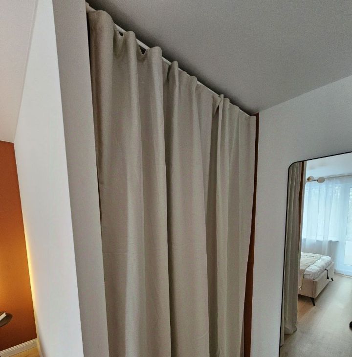 Две полноценные изолированные комнаты - спальня с гардеробной и гостиная.
