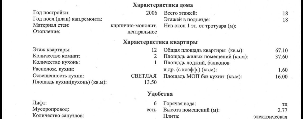 Основные характеристики квартиры: