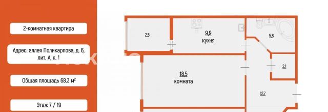 2-к кв. Санкт-Петербург аллея Поликарпова, 6к1 (68.3 м²)