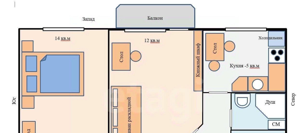 Планировка отличается практичностью: две изолированные комнаты и большой коридор, что создает комфортные условия для совместного проживания.