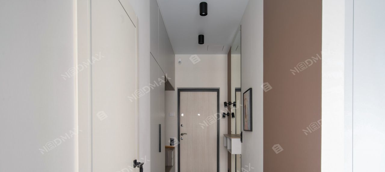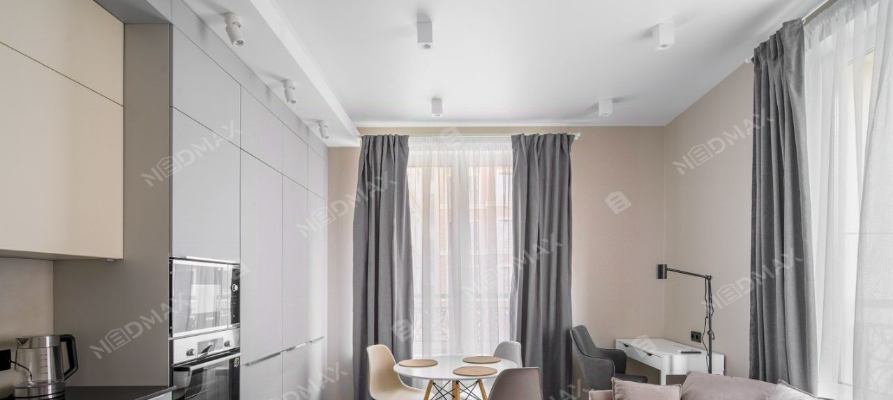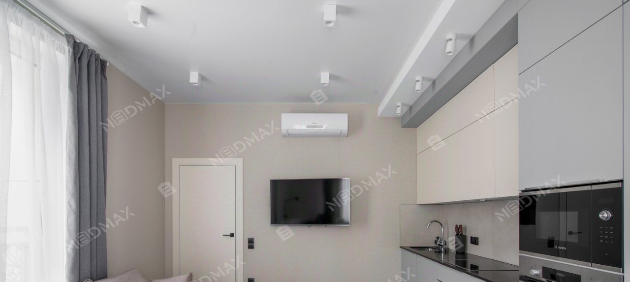 Квартира стильная, компактная, при этом очень эргономичная. Есть зона готовки, обеденная группа, и удобная зона отдыха, а также рабочее место. Встроенная кухня со всей необходимой бытовой техникой. Установлен кондиционер.