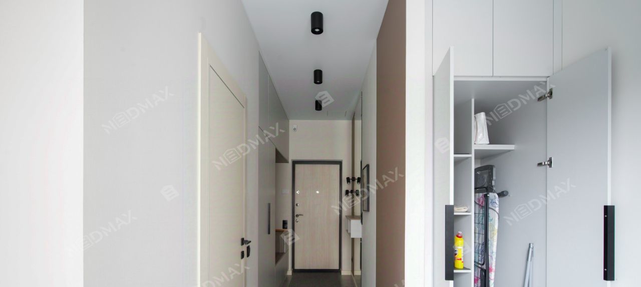 Для хранения вещей также предусмотрены встроенные шкафы в прихожей. В квартире также есть посуда и постельные принадлежности.