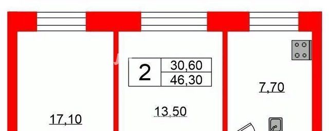 2-к кв. Санкт-Петербург Авангардная ул., 3 (46.3 м²)