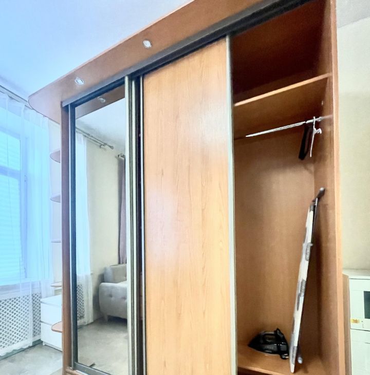 Шкаф купе, кресло, тумбы для хранения вещей, детская кровать (можно убрать)