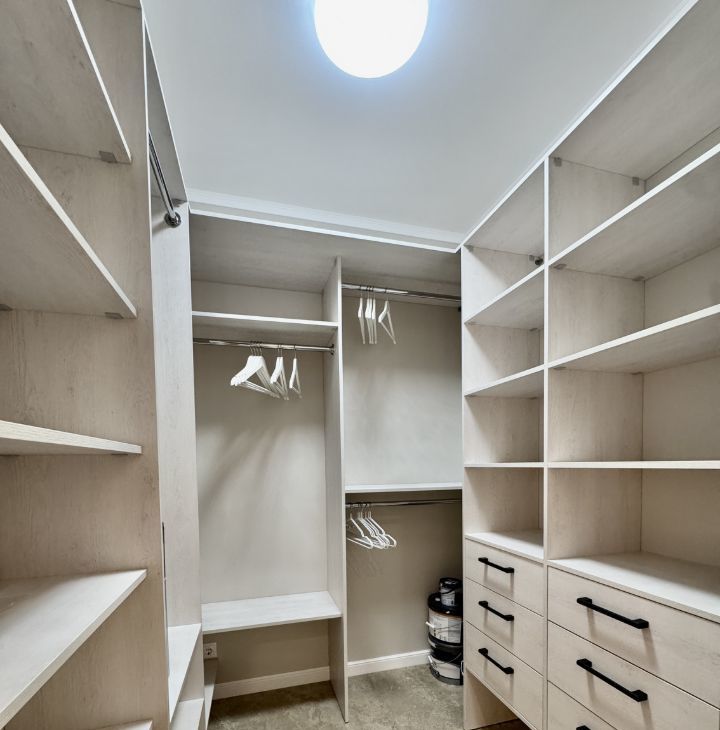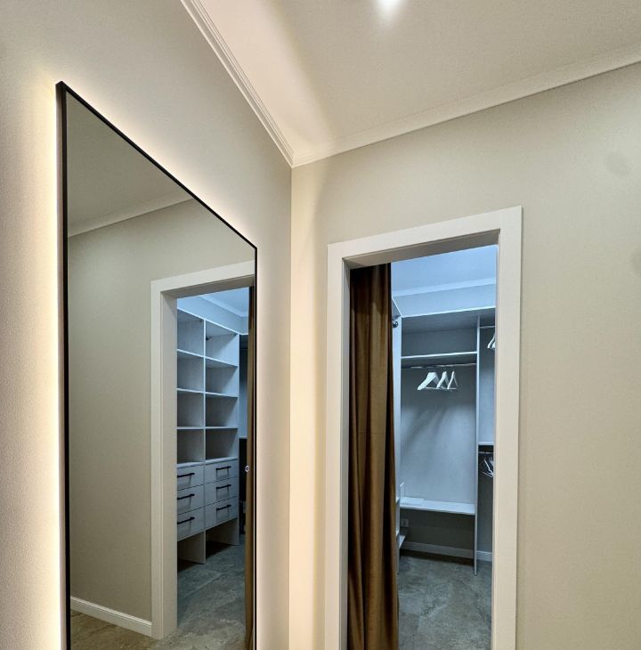 В спальне двуспальная кровать с подьемным механизмом. Вместительная гардеробная 3.6м.