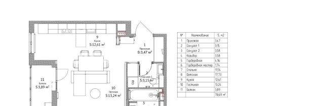 Общая площадь 75,3 м2