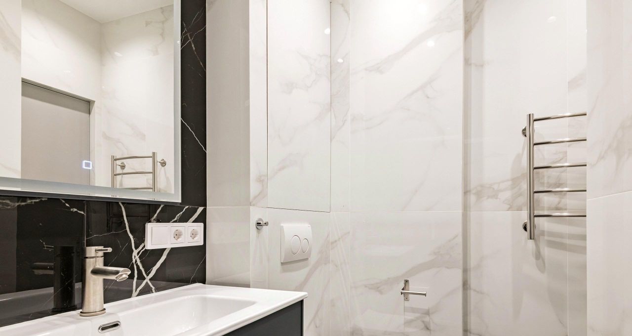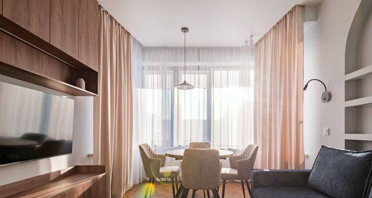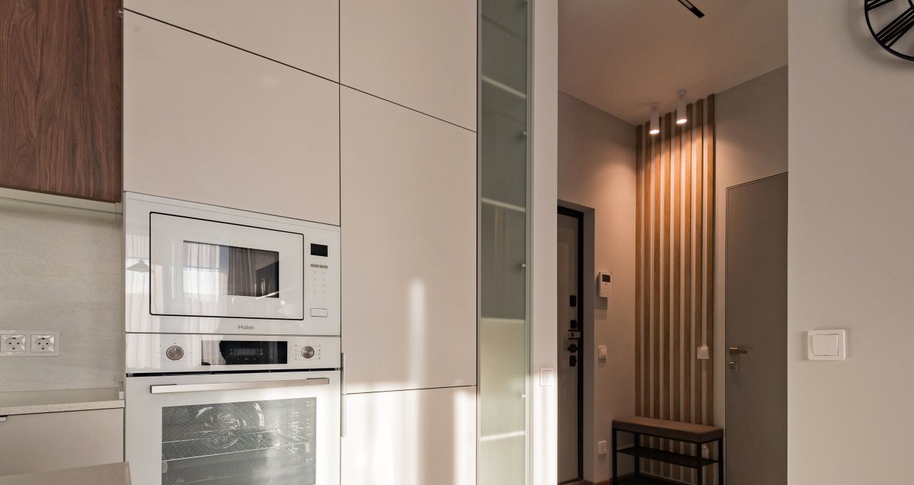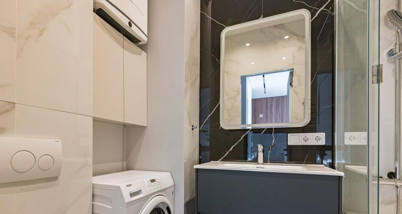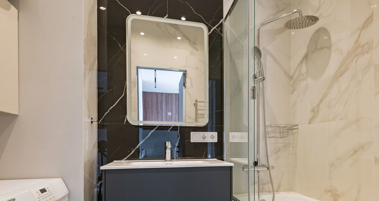 Квартира полностью готова к въезду: здесь есть вся необходимая мебель и техника. На кухне вы найдёте удобную мебель и современную технику: холодильник, посудомоечную машину и кондиционер. В комнатах также установлена вся необходимая мебель и телевизор. В квартире два санузла: один с ванной, другой с душевой кабиной, что делает её особенно удобной для проживания.