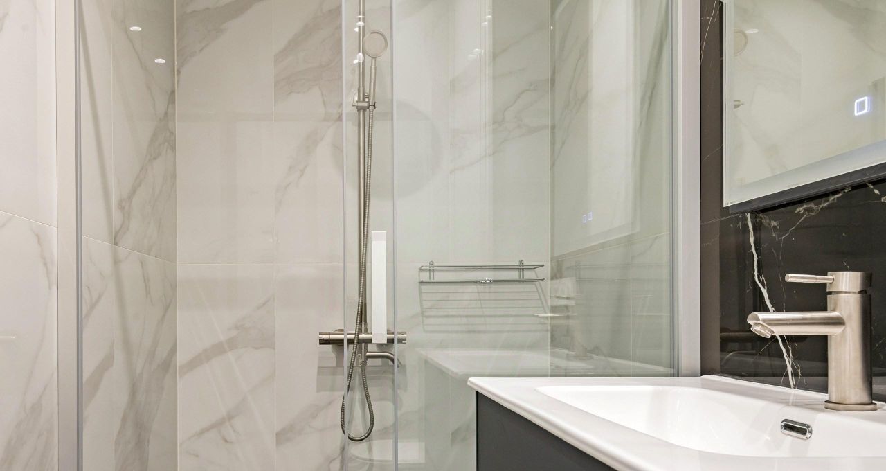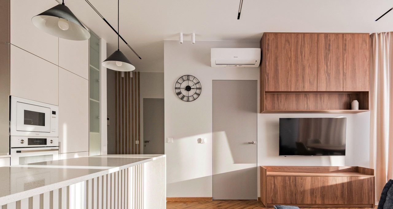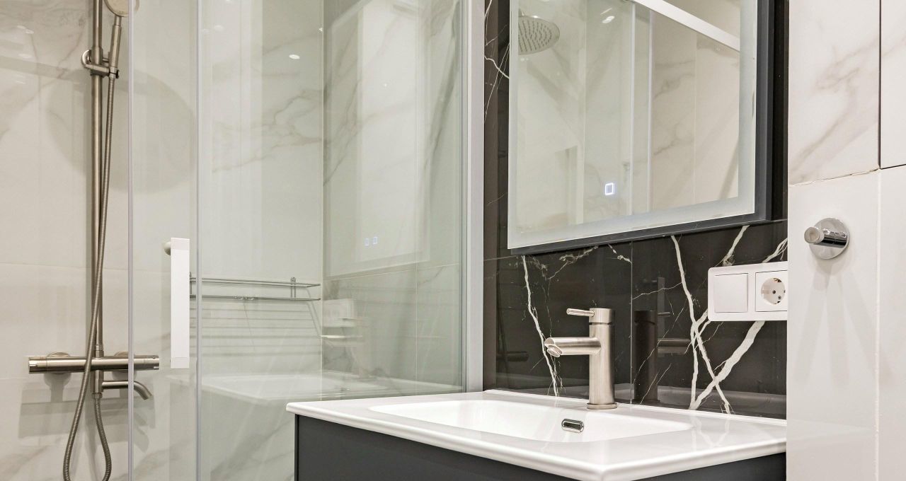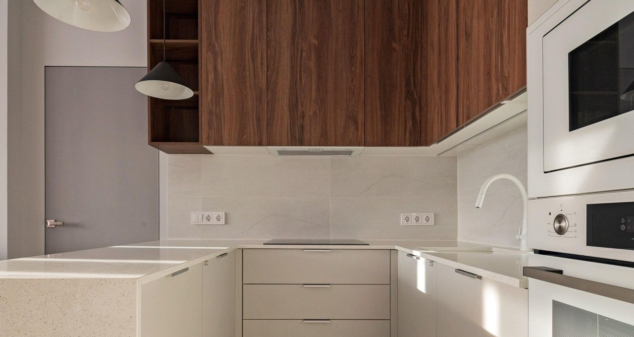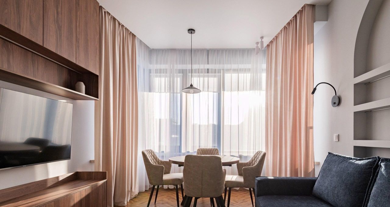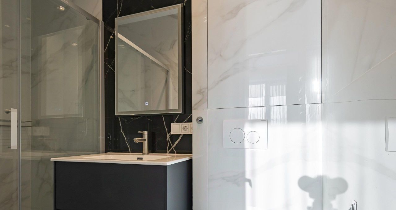 Квартира полностью готова к въезду: здесь есть вся необходимая мебель и техника. На кухне вы найдёте удобную мебель и современную технику: холодильник, посудомоечную машину и кондиционер. В комнатах также установлена вся необходимая мебель и телевизор. В квартире два санузла: один с ванной, другой с душевой кабиной, что делает её особенно удобной для проживания.