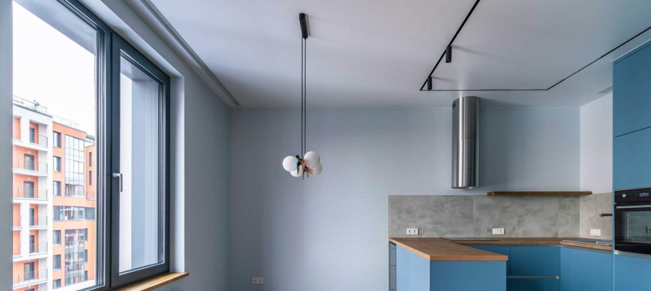 Большая кухня с полуостровом.
