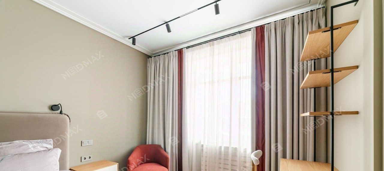 Просторная спальная комната с отдельной гардеробной.