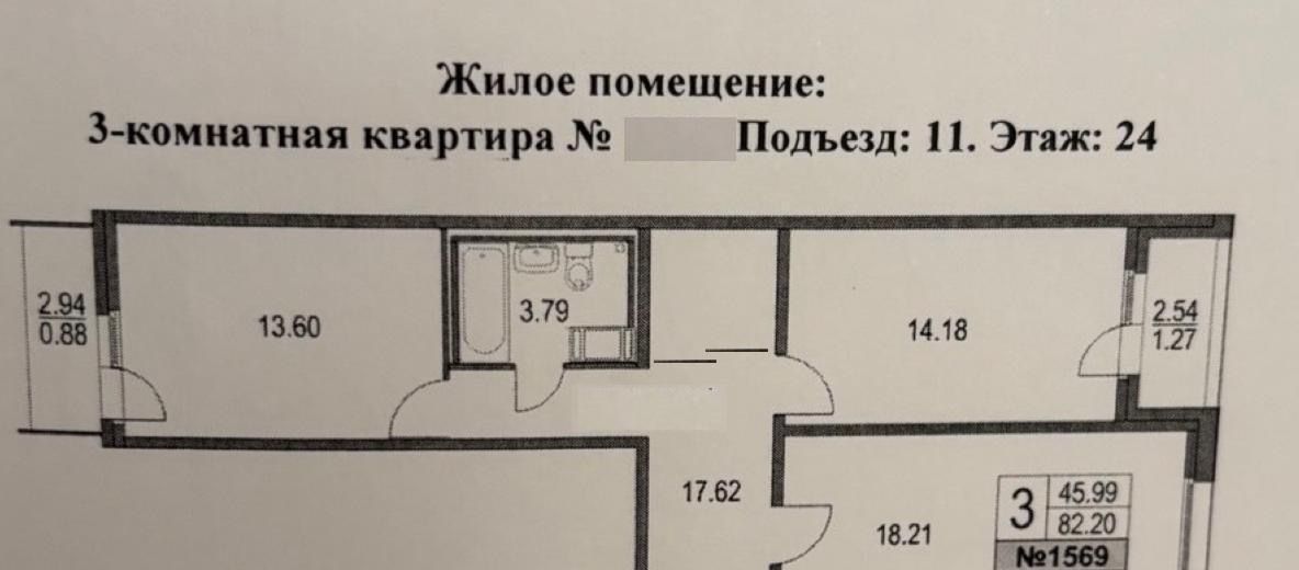 2-к кв. Санкт-Петербург Богатырский просп., 2А (82.2 м²)