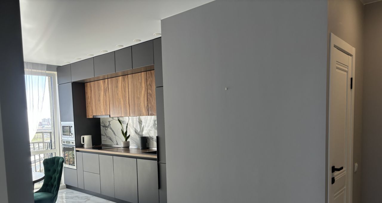 Квартира на 11 этаже( только на 11-12 этажах панорамные окна в пол и французские балконы. Выполнен качественный ремонт, установлены приточные бризеры с 4-х точечной фильтрацией воздуха и подогревом, можно пользоваться круглый год. Также установлены кондиционеры, современная кухня со встроенной техникой (посудомоечная машина, духовой шкаф, микроволновая печь, большой холодильник, стиральная машина).