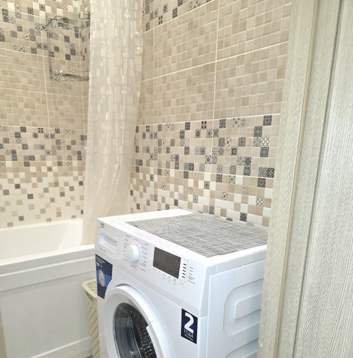 Квартира полностью готова для комфортного проживания. Внутри выполнен качественный ремонт. На кухне и в комнате есть необходимая мебель. Для вашего удобства в квартире есть холодильник и стиральная машина. Ванная комната оборудована ванной, что позволяет расслабиться после долгого дня. Также в квартире есть одна лоджия.