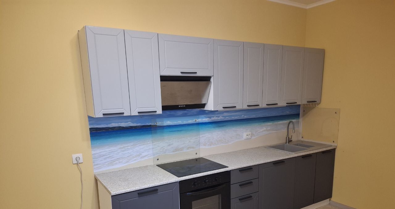 Квартира комфортной планировки: большой коридор, раздельный санузел, кухня 19.1 м² с выходом на застеклённую лоджию, две изолированные комнаты 18.2 м² + 14.2 м². Из мебели есть кухонный гарнитур с мойкой. Из техники - плита, вытяжка, посудомоечная машина. В комнатах мебели нет.