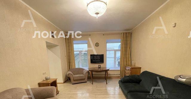 Квартира площадью 50 кв.м., две смежные комнаты, отдельная кухня. Совмещенный санузел с ванной. Высокий первый этаж (Бельэтаж, уровень второго), окна во двор, вход со двора.