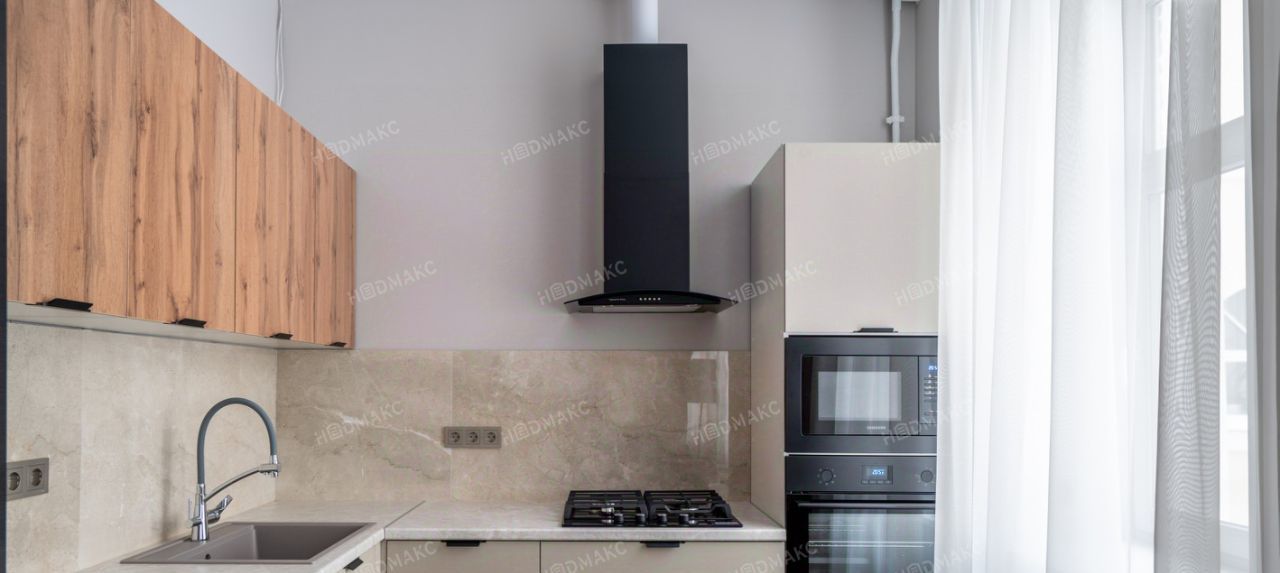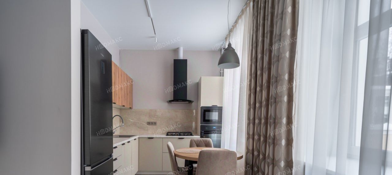 Окна квартиры выходят во двор, что гарантирует тишину и спокойствие. Внутри установлена вся необходимая техника: стиральная и посудомоечная машины, духовой шкаф, газовая плита, холодильник, телевизор и кондиционер — все для вашего комфорта.